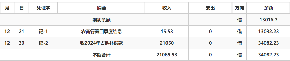 阿城镇西双庙村2024年12月份账目收支明细表