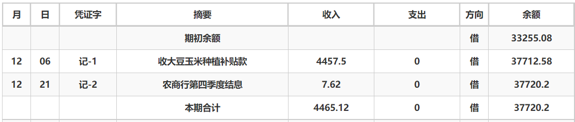 阿城镇刘庄村2024年12月份账目收支明细表