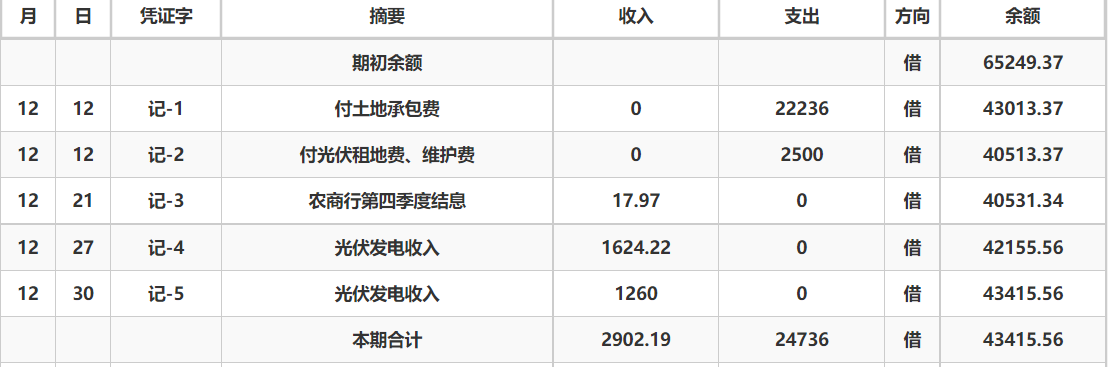 阿城镇陈回庄村2024年12月份账目收支明细表