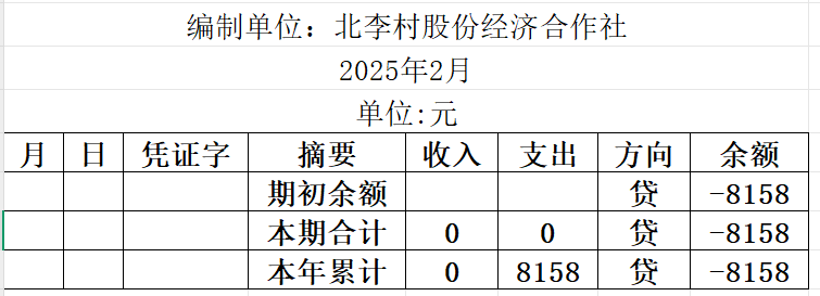 阿城镇北李村2025年2月份账目收支明细表