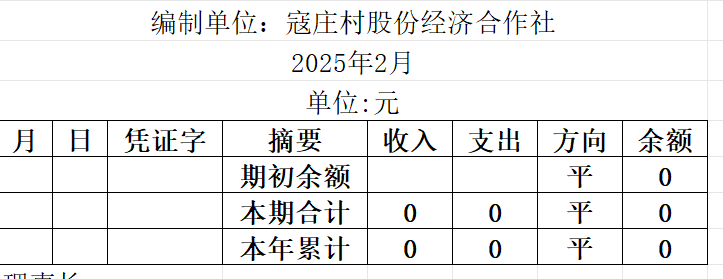 阿城镇寇庄村2025年2月份账目收支明细表