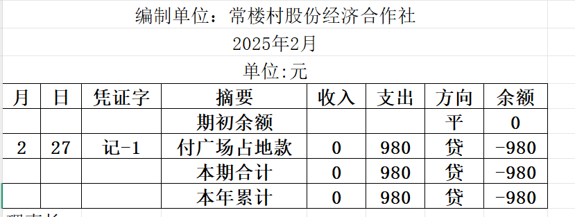 阿城镇常楼村2025年2月份账目收支明细表