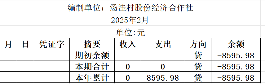 阿城镇汤洼村2025年2月份账目收支明细表