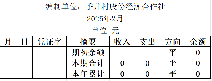 阿城镇季井村2025年2月份账目收支明细表
