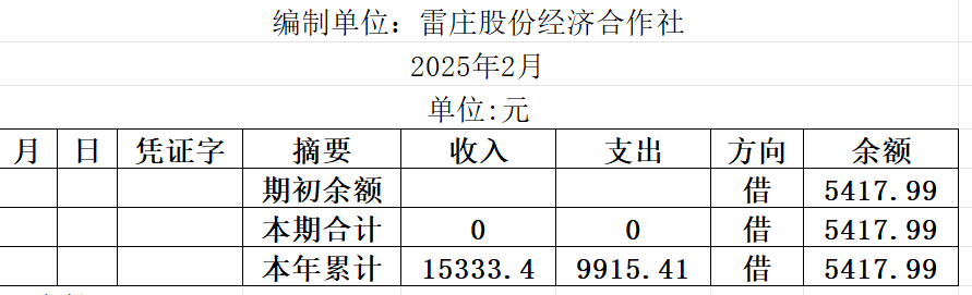 阿城镇雷庄村2025年2月份账目收支明细表