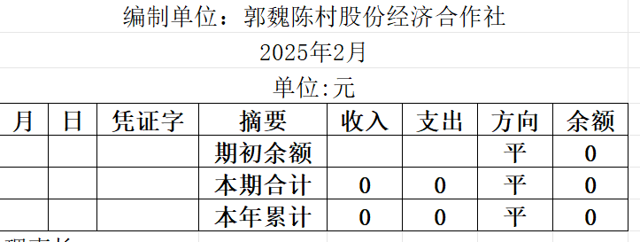 阿城镇郭魏陈村2025年2月份账目收支明细表