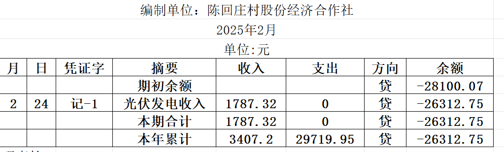 阿城镇陈回庄村2025年2月份账目收支明细表