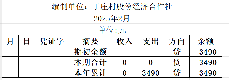 阿城镇于庄村2025年2月份账目收支明细表