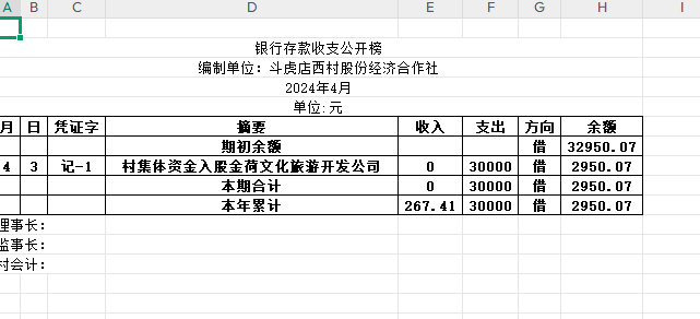 阳谷县金斗营镇斗西村资金公开明细表2024.04