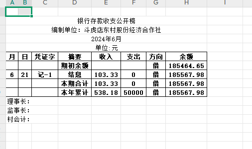 阳谷县金斗营镇斗东村资金公开明细表2024.06