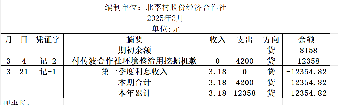 阿城镇北李村2025年3月份账目收支明细表