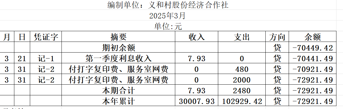 阿城镇义和村2025年3月份账目收支明细表