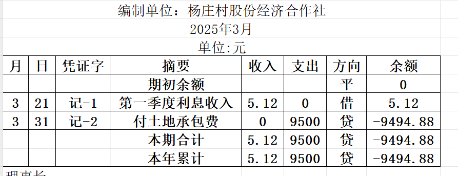 阿城镇杨庄村2025年3月份账目收支明细表