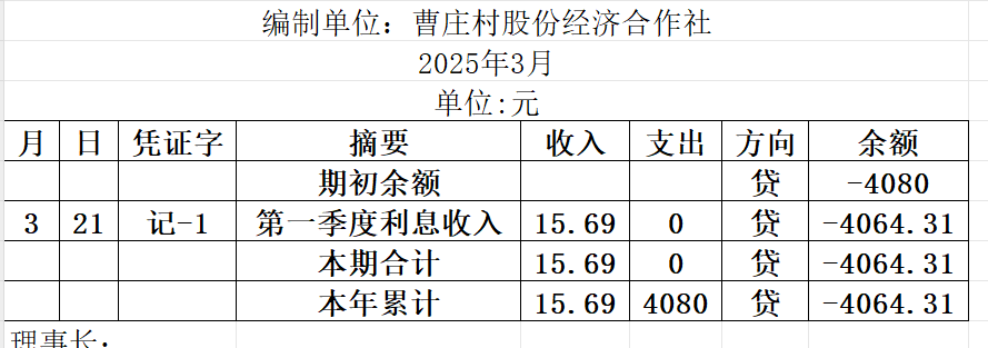 阿城镇曹庄村2025年3月份账目收支明细表