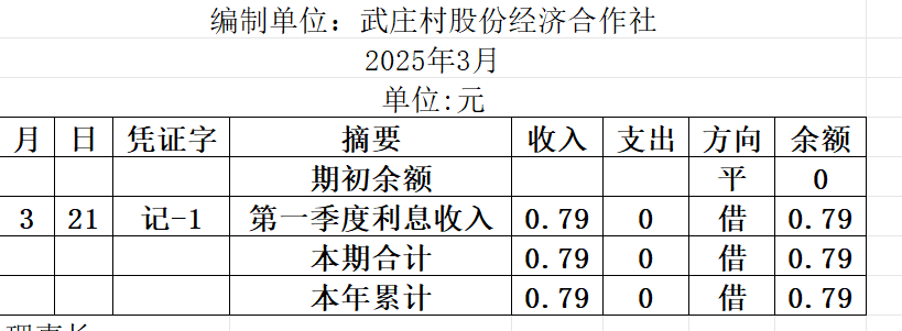 阿城镇武庄村2025年3月份账目收支明细表