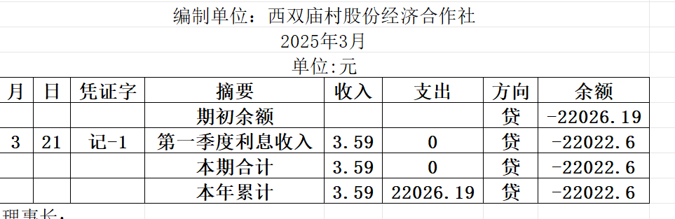 阿城镇西双庙村2025年3月份账目收支明细表