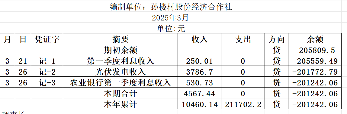 阿城镇孙楼村2025年3月份账目收支明细表