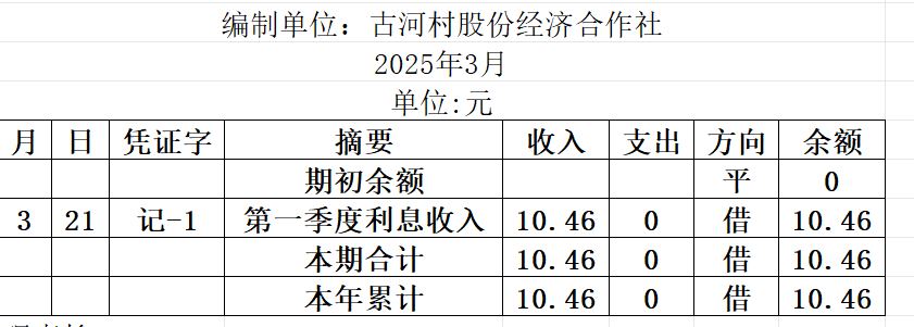阿城镇古河村2025年3月份账目收支明细表