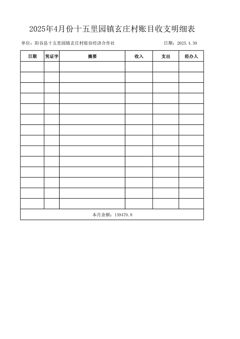 2025年4月份十五里园镇玄庄村账目收支明细表