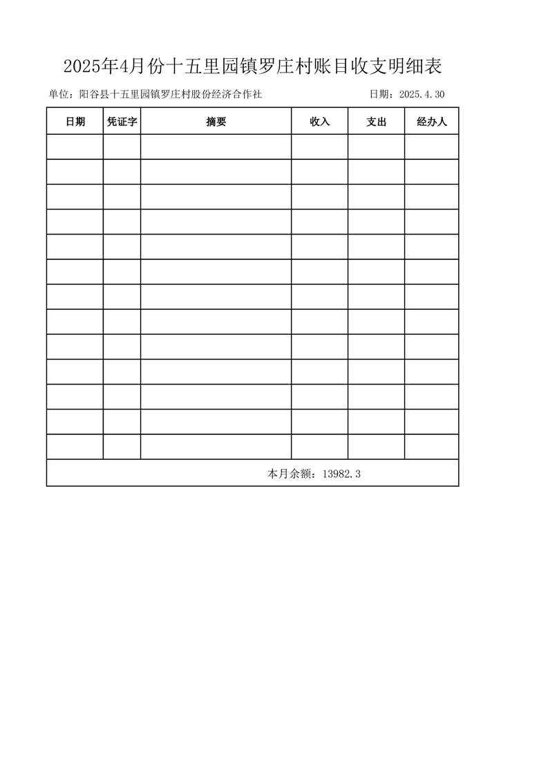 2025年4月份十五里园镇罗庄村账目收支明细表