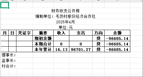 阿城镇毛坊村2025年4月份账目收支明细表