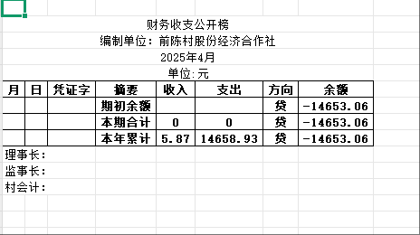 阿城镇前陈村2025年4月份账目收支明细表