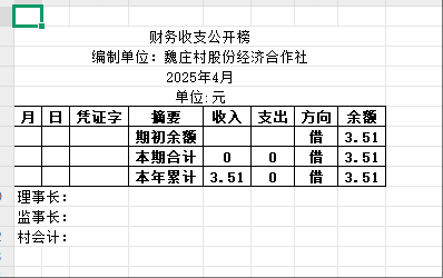 阿城镇魏庄村2025年4月份账目收支明细表