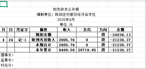 阿城镇陈回庄村2025年4月份账目收支明细表