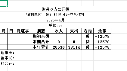 阿城镇皋门村2025年4月份账目收支明细表