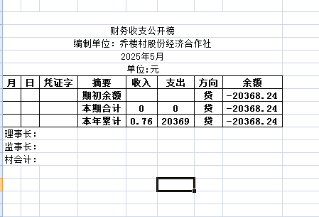 阿城镇乔楼村2025年5月份账目收支明细表
