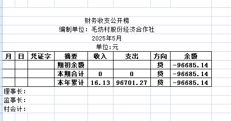 阿城镇毛坊村2025年5月份账目收支明细表