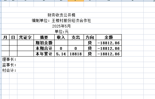 阿城镇王楼村2025年5月份账目收支明细表