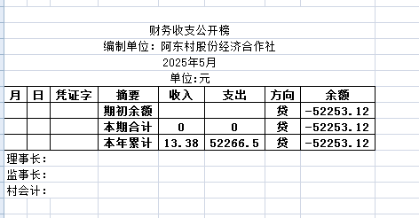 阿城镇阿东村2025年5月份账目收支明细表