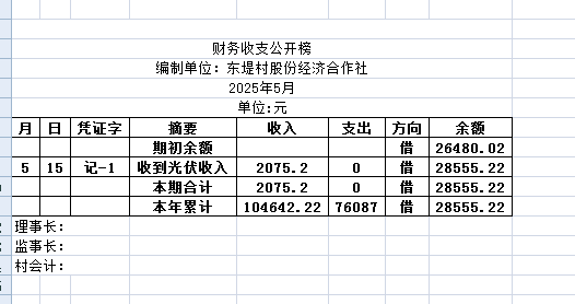 阿城镇东堤村2025年5月份账目收支明细表