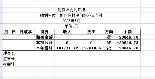阿城镇刘什庄村2025年5月份账目收支明细表