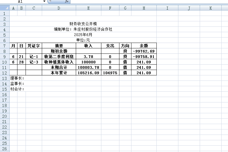 阿城镇朱庄村2025年6月份账目收支明细表