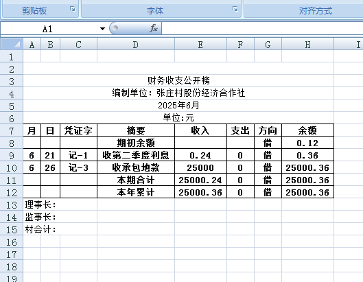 阿城镇张庄村2025年6月份账目收支明细表
