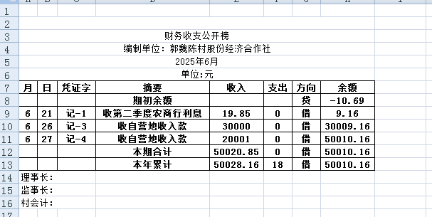 阿城镇郭魏陈村2025年6月份账目收支明细表