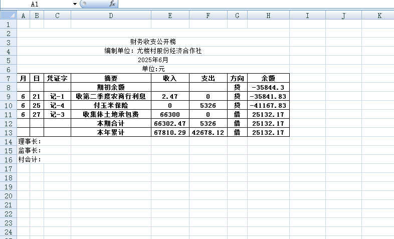 阿城镇尤楼村2025年6月份账目收支明细表