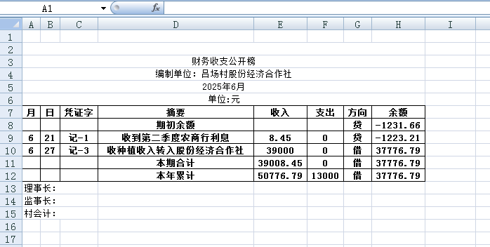 阿城镇吕场村2025年6月份账目收支明细表