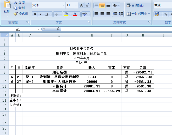 阿城镇宋庄村2025年6月份账目收支明细表