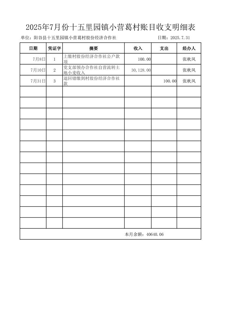 2025年7月份十五里园镇小营葛村账目收支明细表