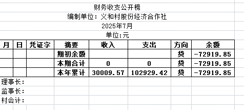 阿城镇义和村2025年7月份账目收支明细表