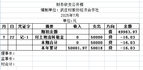 阿城镇武庄村2025年7月份账目收支明细表