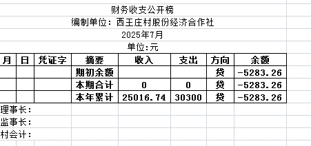 阿城镇西王庄村2025年7月份账目收支明细表