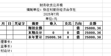 阿城镇张庄村2025年7月份账目收支明细表