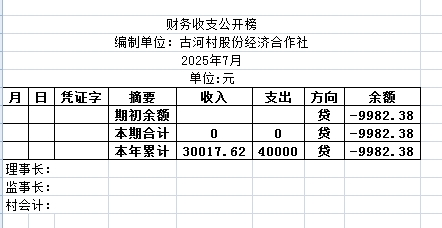 阿城镇古河村2025年7月份账目收支明细表