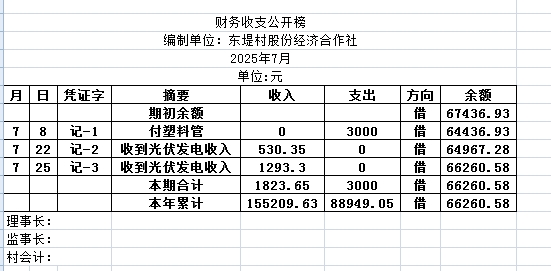 阿城镇东堤村2025年7月份账目收支明细表