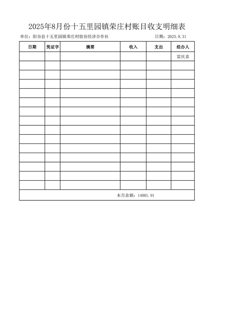 2025年8月份十五里园镇荣庄村账目收支明细表