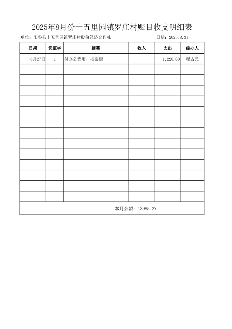 2025年8月份十五里园镇罗庄村账目收支明细表
